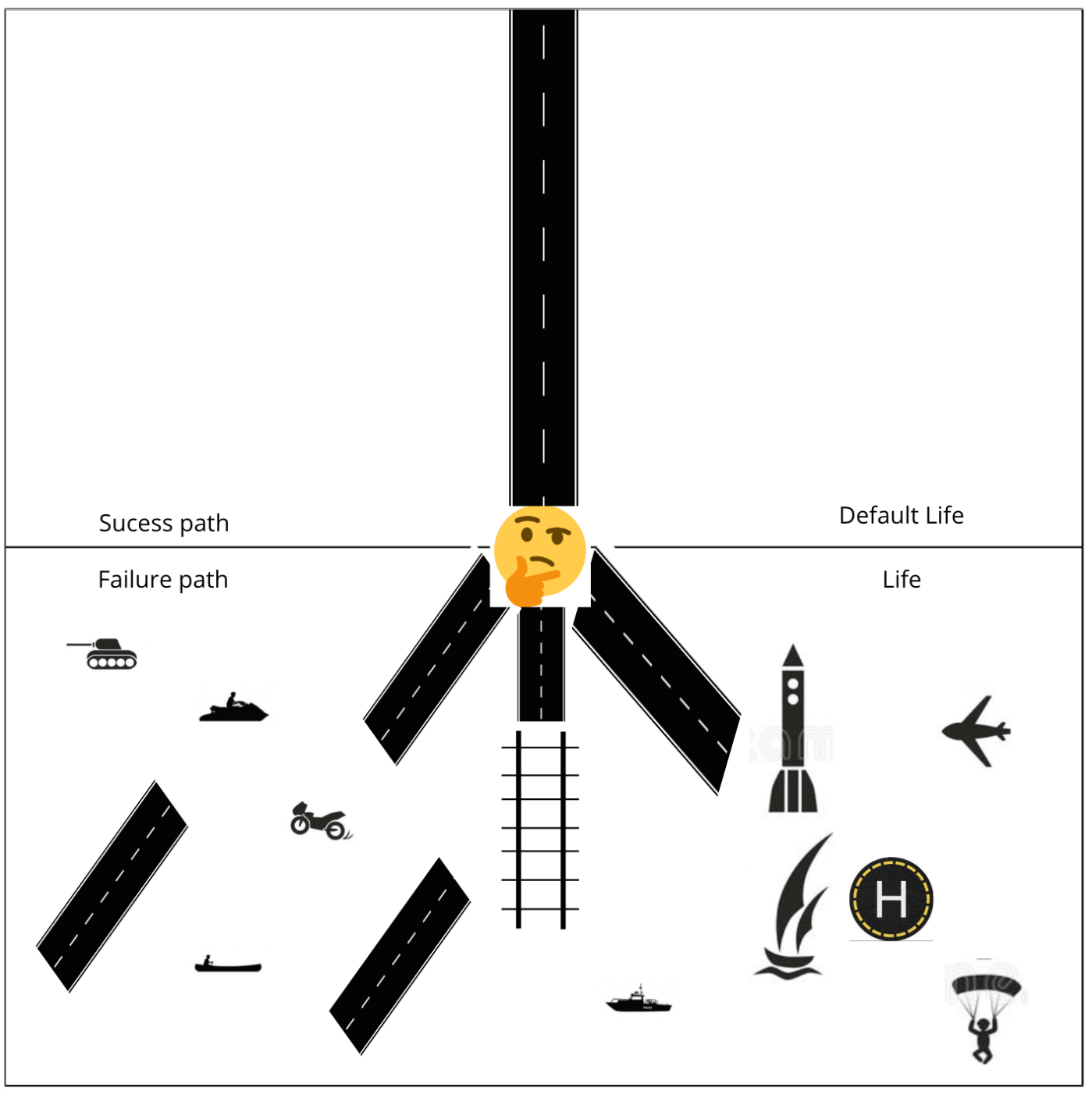 If we had failed in any of these milestones, we would have had an opportunity to think and make decisions. Looks out for options and explore and in the course discover oneself. We would have skipped the default life.
