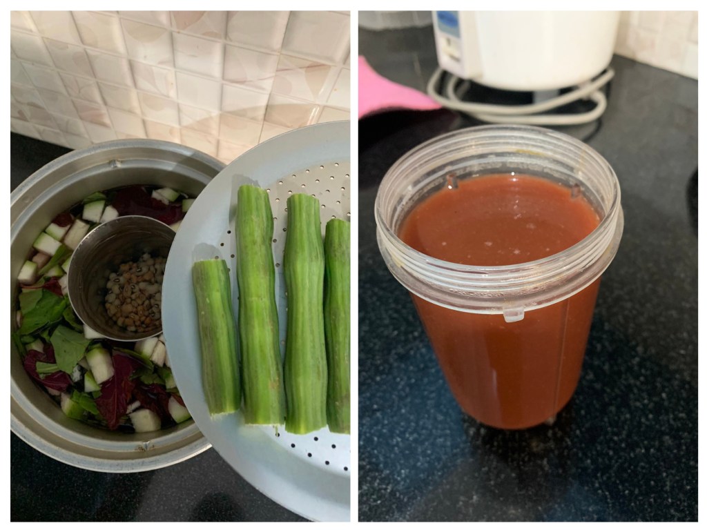 Cut everything into small pieces and boil. Blend to make the soup. Add water depending on how think you want the soup. You can add pepper powder and salt (just for taste).