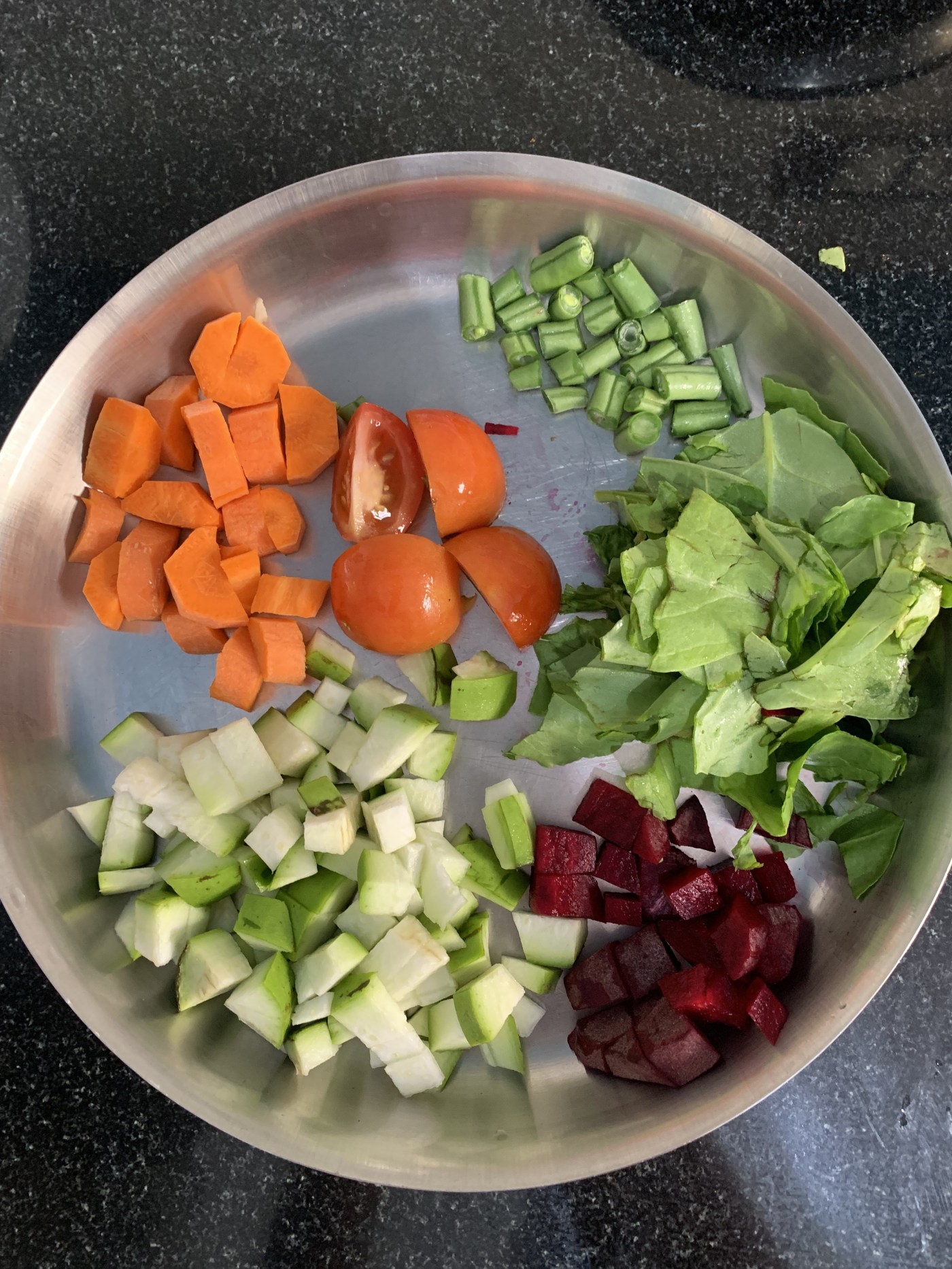 - 4 to 5 types of vegetables – ridged guard, capsicum, radish, brinjal.